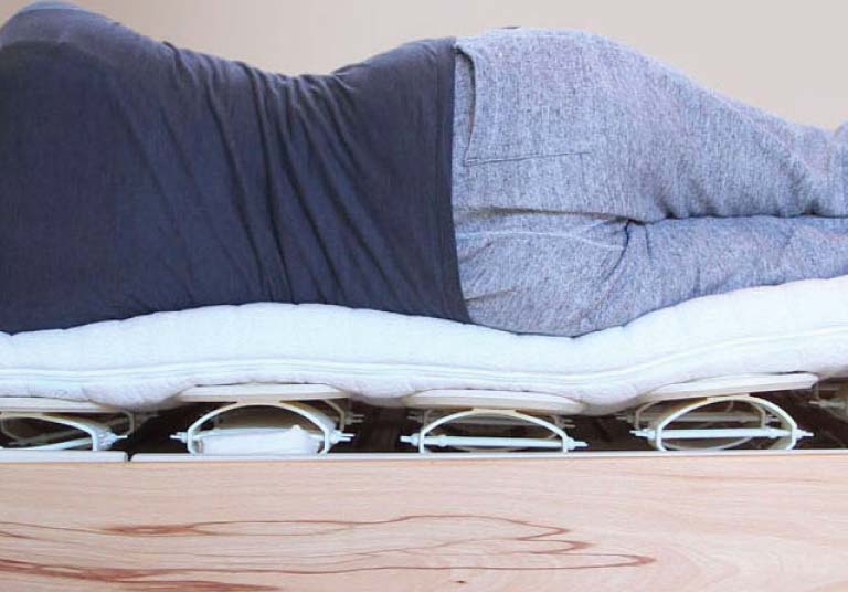 人間の身体は皆異なるものです。身長、体重、肩幅、腰の位置、関節の柔らかさ、筋肉量、年齢の違いに加え、眠る時の癖や長年使ってきた寝具にもそれぞれ違いがあります。そうした違いを受け止めるために、ラテックスのサスペンションの調整や無垢板の抜き差しをすることで、使う方の身体に合わせた細かな調節をすることができます。
