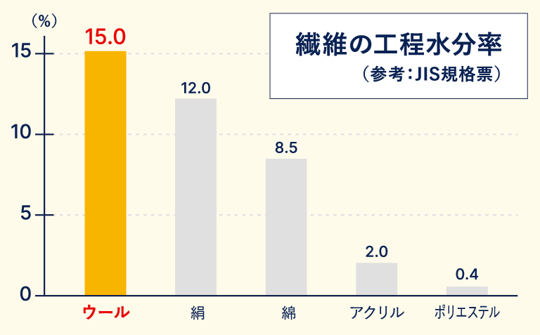 羊毛は、人間が寝ている間にかく汗をすばやくキャッチして逃がすので、湿度による疲労や蒸れ感、冷えから身を守ります。