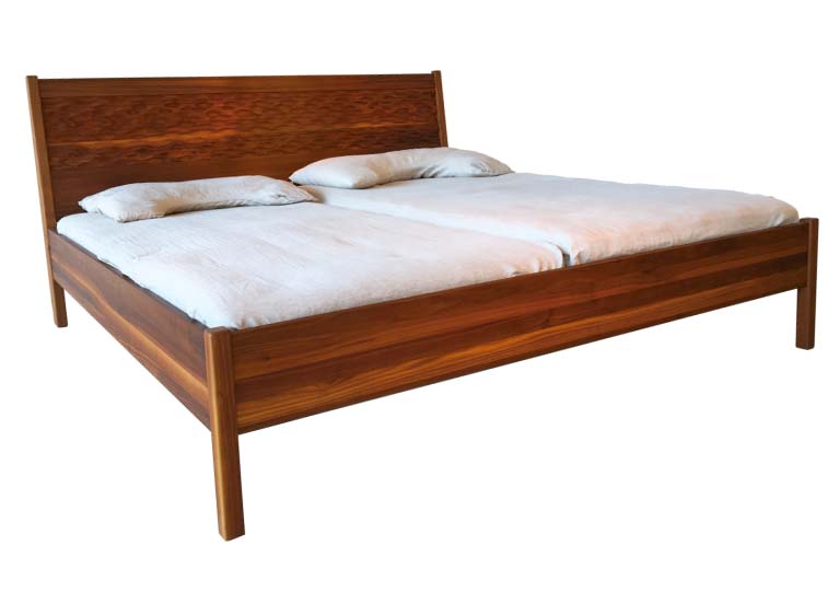 環境先進国の豊かな森林に囲まれた環境で一台一台丁寧に作られるベッドフレームは、無垢の木材の美しさを活かし、塗料は蜜蝋のみを使用。ネジや釘・金具などの金属を一切使用していません。優れた木工技術による木組みのみの構造ですが、シンプルな素材と構造ゆえに耐久性にも非常に優れています。2世代3世代と、味わいを増しながら長く使い続けられるベッドフレームです。