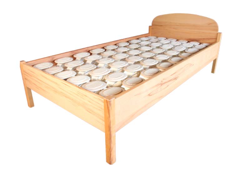 金澤屋のベッドは基本的に「ウッドスプリング・マットレス・ベッドパッド」この3つの天然素材の層の組み合わせで、使う人それぞれの眠りに合わせた寝心地を作ります。